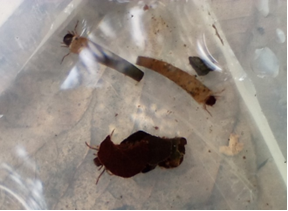 What I have found most interesting from joining some of the volunteers on their samples is the number of invertebrates in each sample. Just a 3-minute kick sample can bring up hundreds of invertebrates from the sediment and it can be mesmerising to watch them all swimming around in the tray. The swimming patterns of the invertebrates can also be an easy method of identifying them. For example, olives dart rapidly around the tray whilst stoneflies wiggle from side to side and caseless caddisflies look like they are doing the worm.